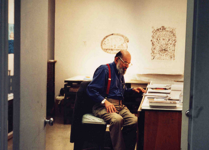 [Allen Ginsberg at Gemini G.E.L artists studio, Los Angeles, 1996]